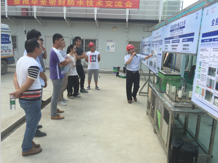 通過(guò)此次講座,項(xiàng)目部成員進(jìn)一步了解了如何能夠一次性解決屋面,地下室,廚房,衛(wèi)生間等各個(gè)部位防水的難題,也知道如何解決因?yàn)槁┧斐傻姆课荻畏敌薜膯?wèn)題,將防水工程施工提高水平。