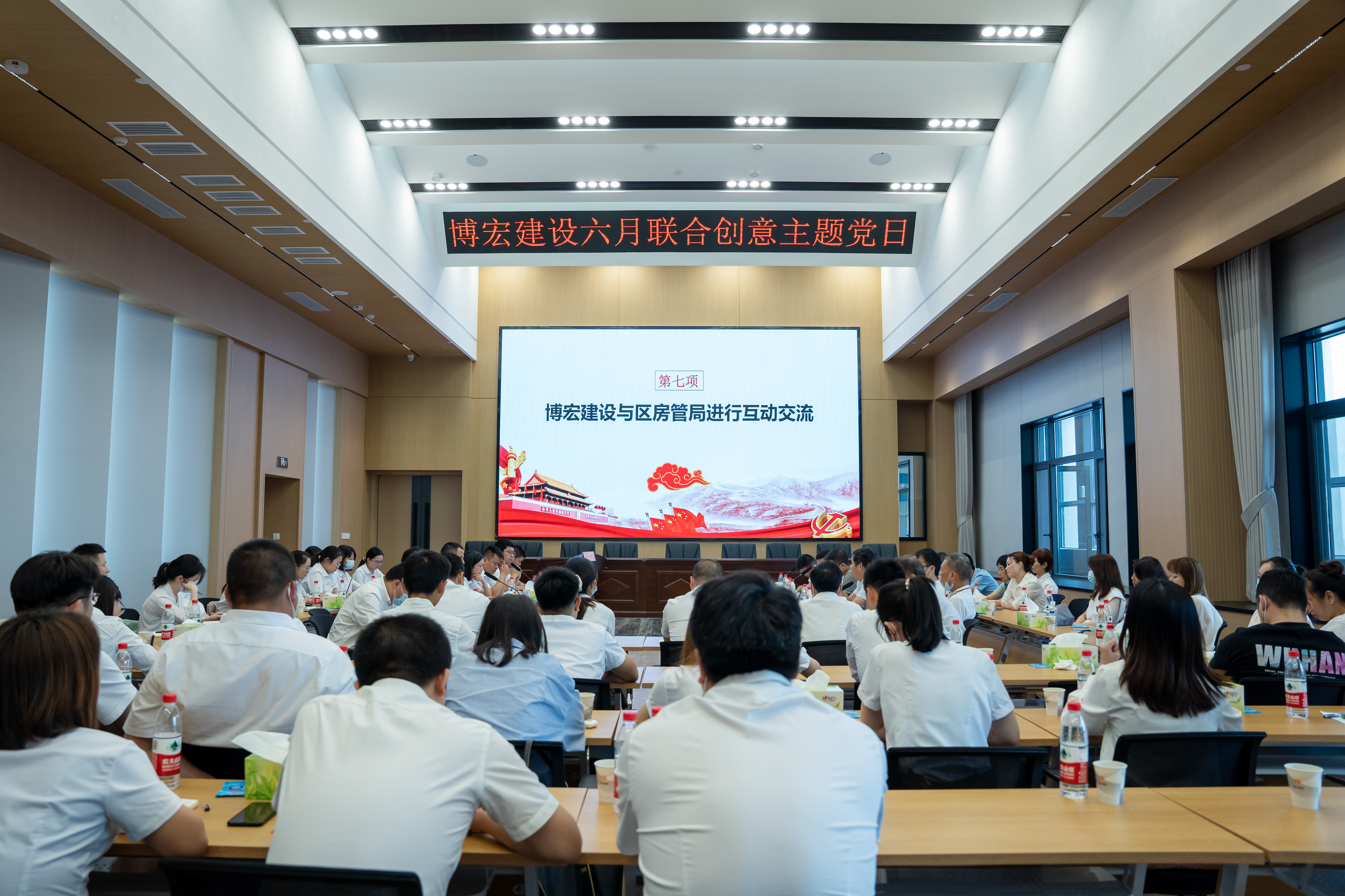 奮斗創(chuàng)造歷史,實(shí)干鑄就未來。6月9日上午,博宏建設(shè)集團(tuán)與漢陽區(qū)房管局聯(lián)合開展6月創(chuàng)意支部主題黨日,會議在博宏建設(shè)集團(tuán)31樓會議室舉行。漢陽區(qū)房管局總工程師戴軍,博宏建設(shè)集團(tuán)黨支部書記、董事長、總經(jīng)理鄒勇等黨員代表,共計60余人參加會議。