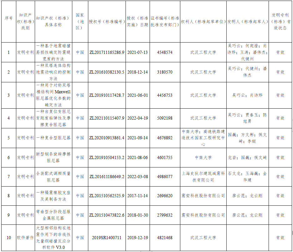 主要完成單位:武漢工程大學(xué)、中南建筑設(shè)計(jì)院股份有限公司、震安科技股份有限公司、上海史狄爾建筑減震科技有限公司、中南大學(xué)、武漢博宏建設(shè)集團(tuán)有限公司、福州大學(xué)、湖南省建筑設(shè)計(jì)院集團(tuán)股份有限公司、中信建筑設(shè)計(jì)研究總院有限公司、高速鐵路建造技術(shù)國(guó)家工程研究中心