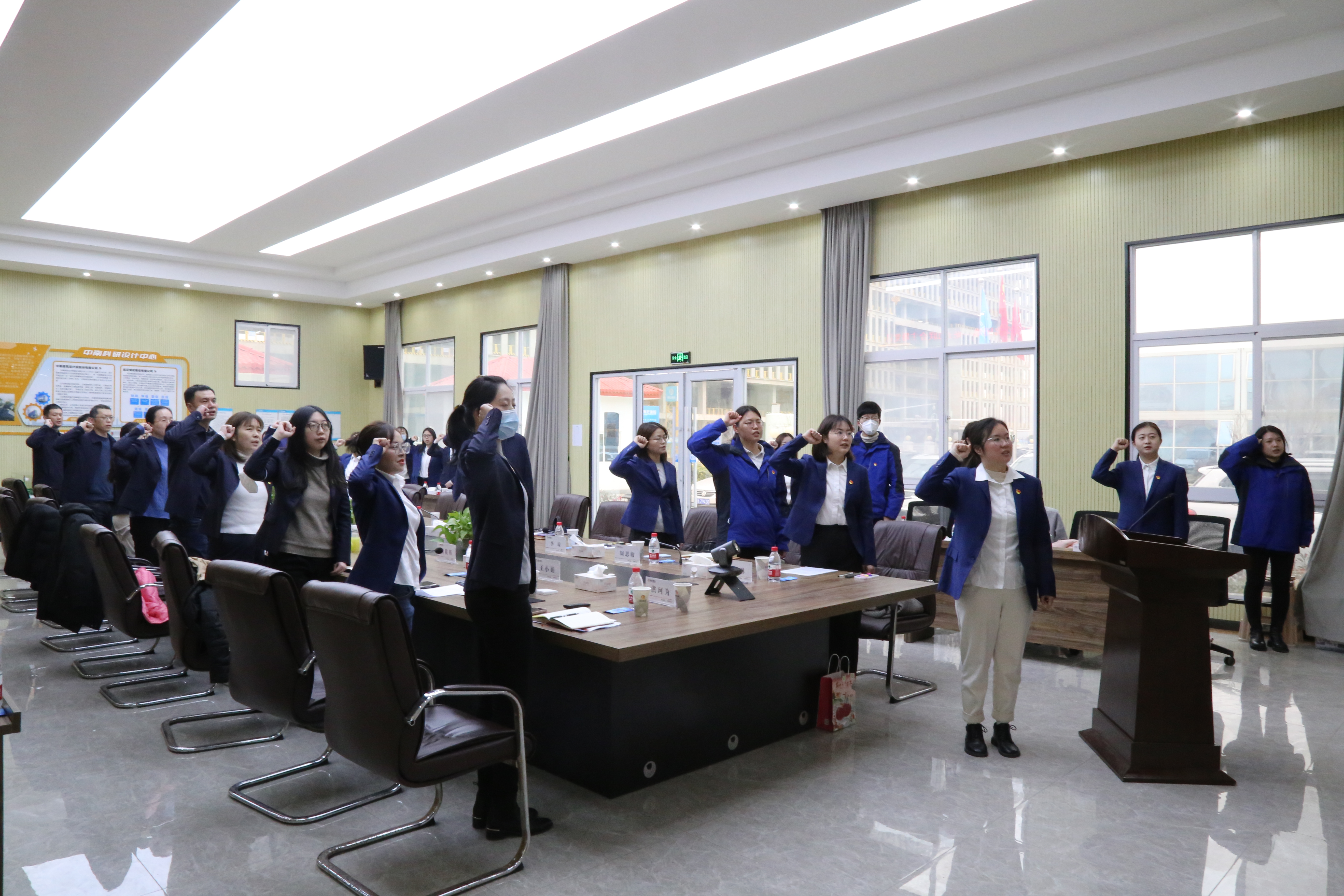 黨員王小娟從現(xiàn)場亮點展示、工程業(yè)績展示、2023年重大節(jié)點項目展示三個維度出發(fā),講述了近年來公司所取得的斐然業(yè)績。風(fēng)勁帆滿圖新志,砥礪奮進正當(dāng)時,開工以來,博宏人正以斗志昂揚的姿態(tài)加速推進年后復(fù)工復(fù)產(chǎn)工作,正如鏗鏘有力的開工誓詞中所說:我們將深推精益建造,踐行完美履約,不忘初心、繼續(xù)前行,精誠協(xié)作、攜手共贏,狠抓工程進度,確保質(zhì)量安全,用拼的姿態(tài)、搶的意識、爭的勁頭,力爭開門紅、確保全年紅!