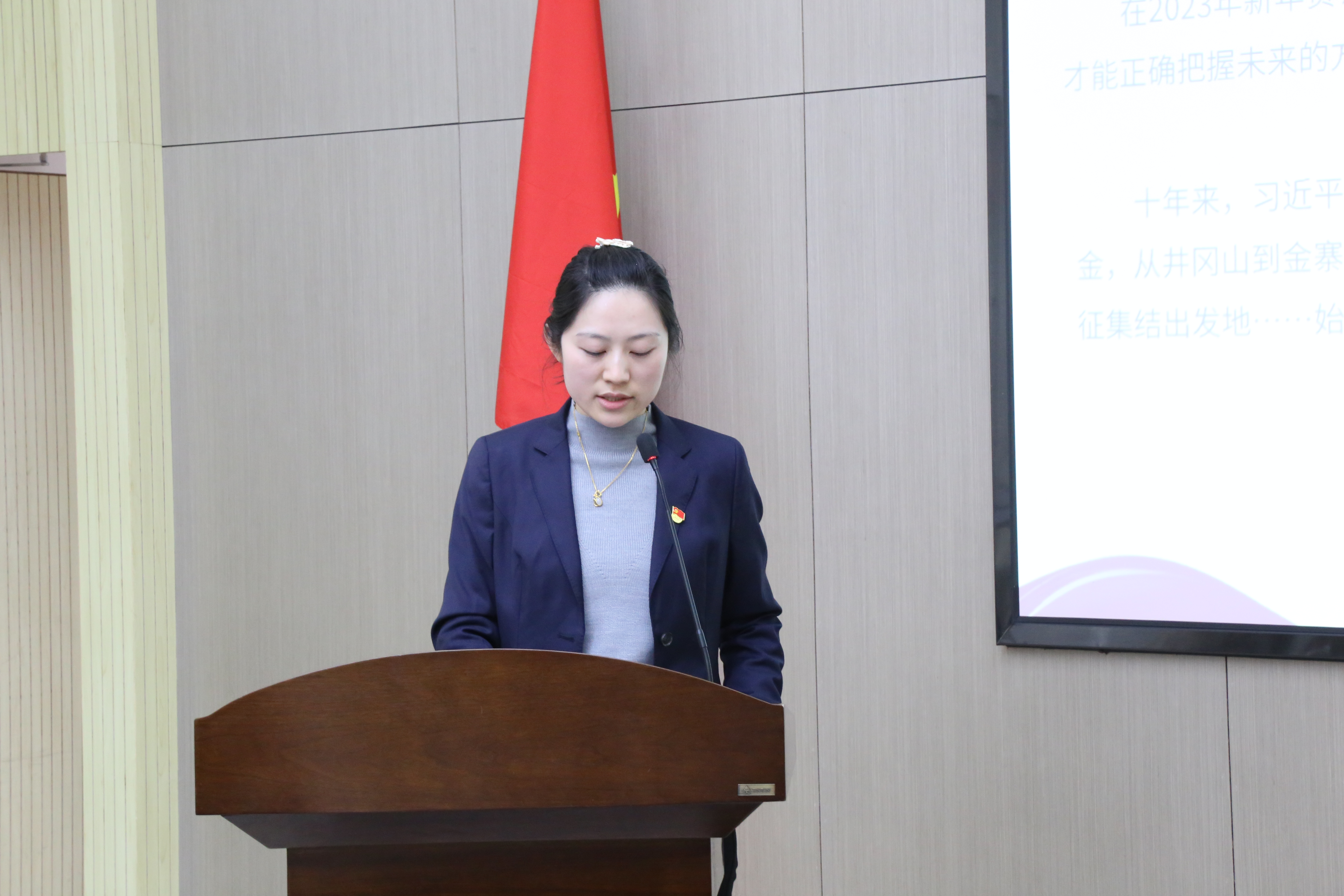 漢陽市政集團機關(guān)第一黨支部黨員洪珂為帶領(lǐng)全體黨員學(xué)習(xí)習(xí)近平總書記重要講話——2023年新年賀詞。講話精神也讓全體黨員更加深刻地認(rèn)識到今天的中國是夢想接連現(xiàn)實的中國、是充滿生機活力的中國、是賡續(xù)民族精神的中國、是緊密聯(lián)系世界的中國。明天的中國,力量源于團結(jié),全體黨員應(yīng)當(dāng)厚植家國情懷、涵養(yǎng)進取品格,以奮斗姿態(tài)激揚青春,不負(fù)時代,不負(fù)華年。