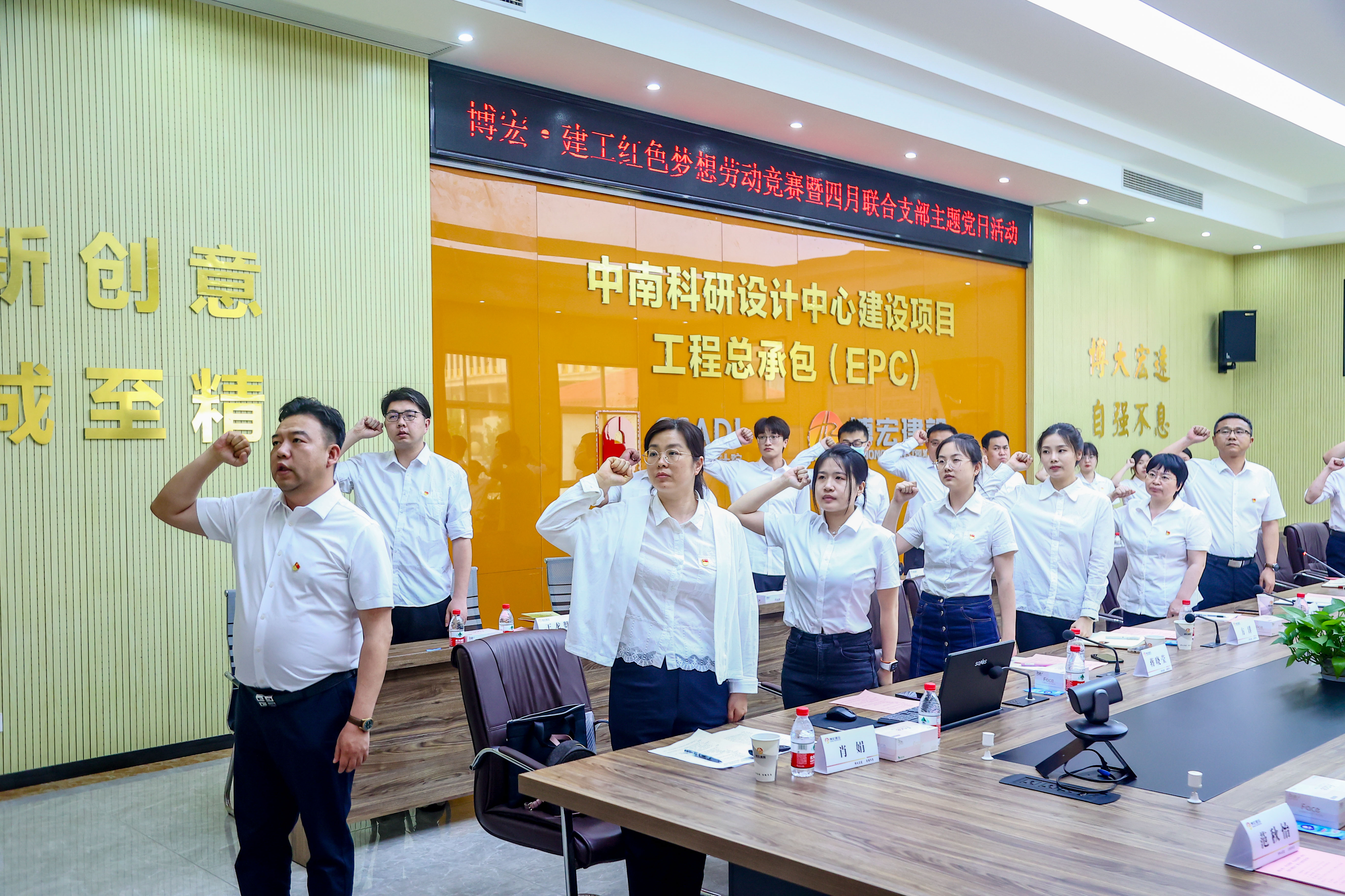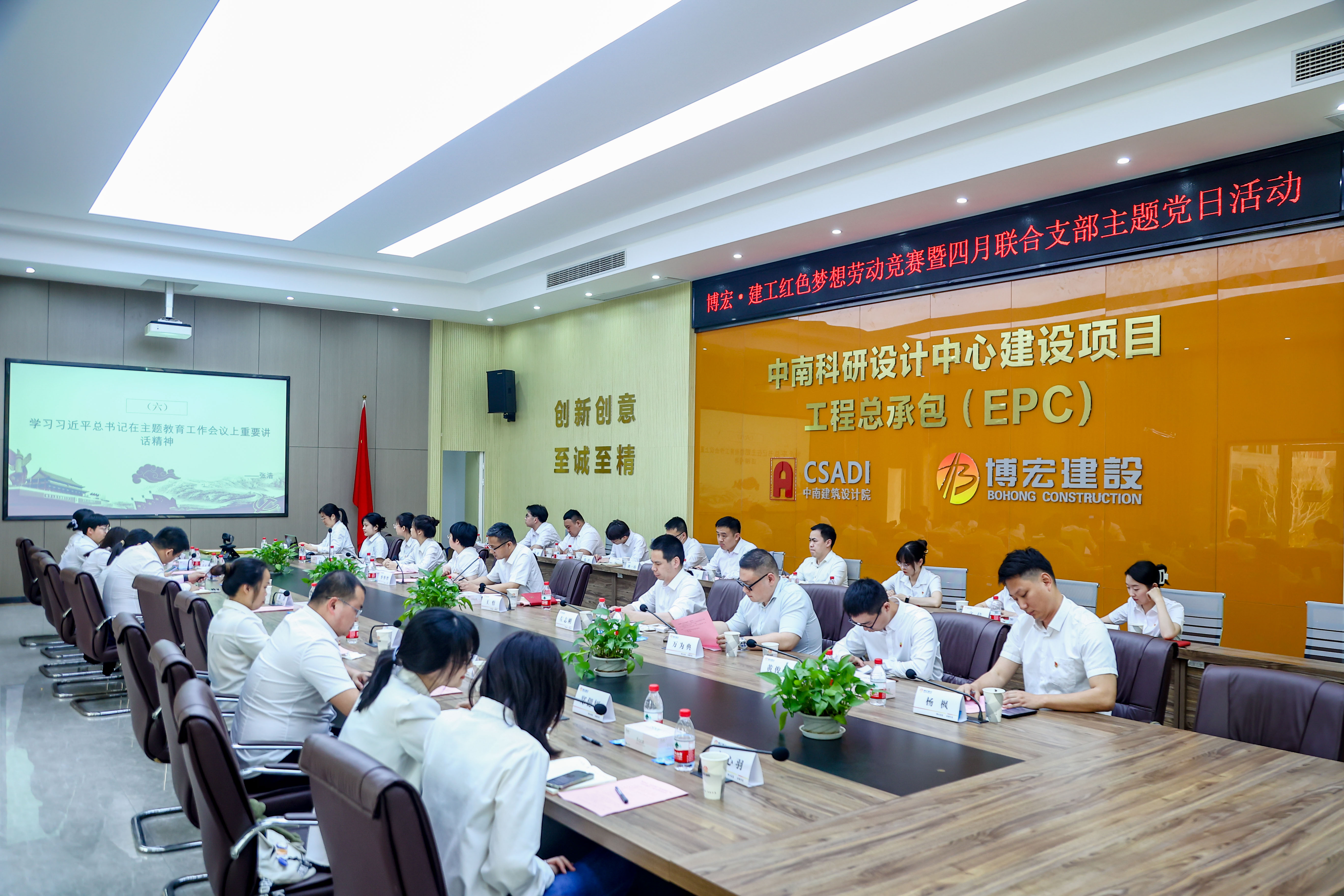 為深入學(xué)習(xí)貫徹黨的二十大和省十二次黨代會精神,大力弘揚(yáng)勞模精神、工匠精神,4月21日下午14:30,博宏建設(shè)集團(tuán)與長投建工聯(lián)合組織開展“紅色夢想”知識競賽暨4月支部主題黨日活動,會議在博宏建設(shè)集團(tuán)中南科研設(shè)計中心項(xiàng)目會議室舉行,會議由鄂康施工企業(yè)聯(lián)合黨支部書記、長投建工董事長張浩主持。