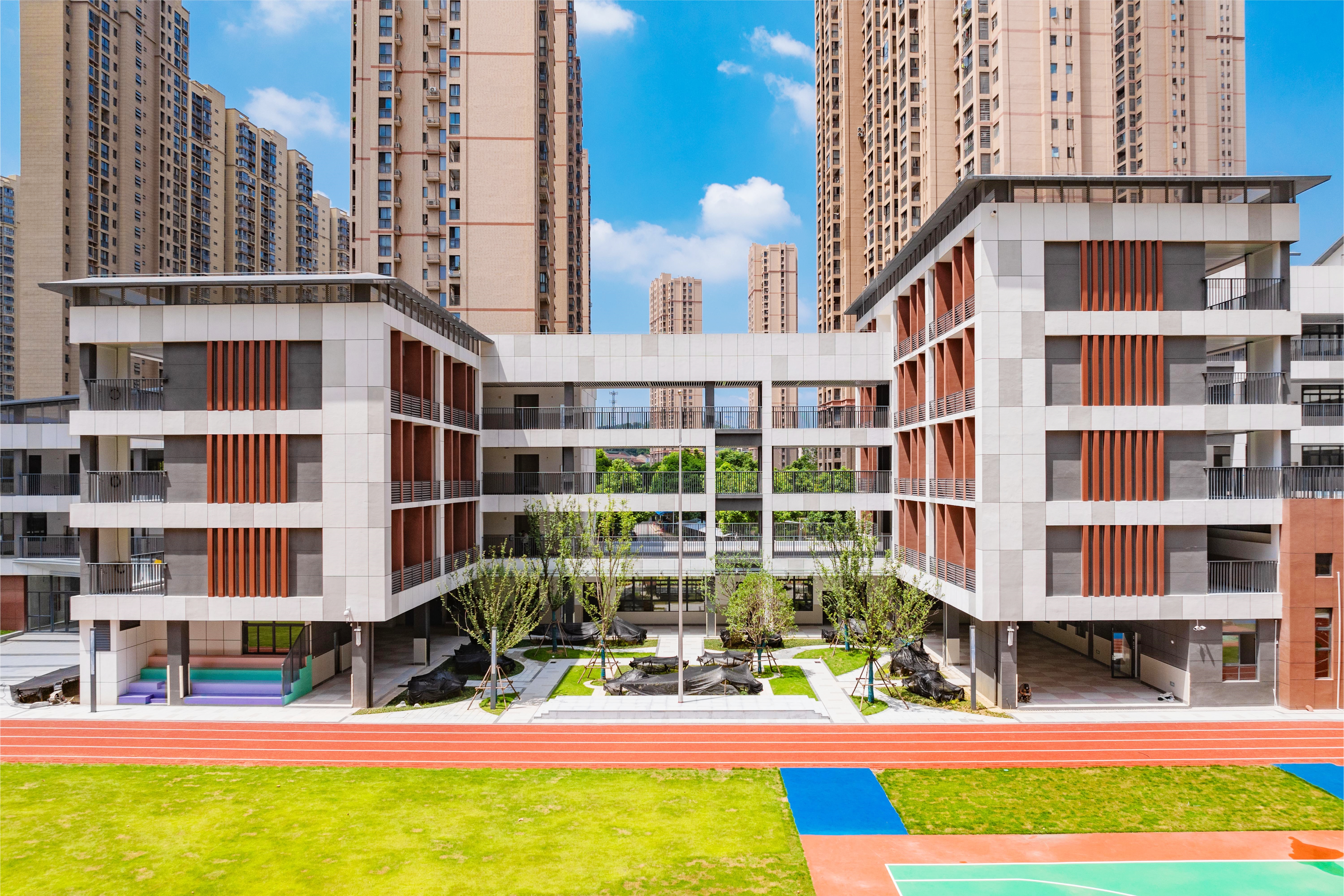 芳草小學(xué)北校區(qū)改擴(kuò)建項(xiàng)目位于武漢市漢陽區(qū)龍陽大道與康達(dá)街交會處,緊鄰南國明珠小區(qū),東面為芳草小學(xué)北校區(qū)老校區(qū)。建設(shè)內(nèi)容包括教學(xué)用房、辦公用房、風(fēng)雨操場、食堂等。學(xué)校建筑、基礎(chǔ)設(shè)施和教育教學(xué)設(shè)備均按照標(biāo)準(zhǔn)化、科學(xué)化、現(xiàn)代化的要求建設(shè)和配備,滿足了學(xué)生德智體美勞全面發(fā)展的需求。校區(qū)內(nèi)苗木種類多,綠化覆蓋率廣,提供了良好的環(huán)境,利于師生課間活動。建成后將在一定程度上緩解學(xué)校教學(xué)設(shè)施不足、區(qū)域教育資源緊張的現(xiàn)狀。