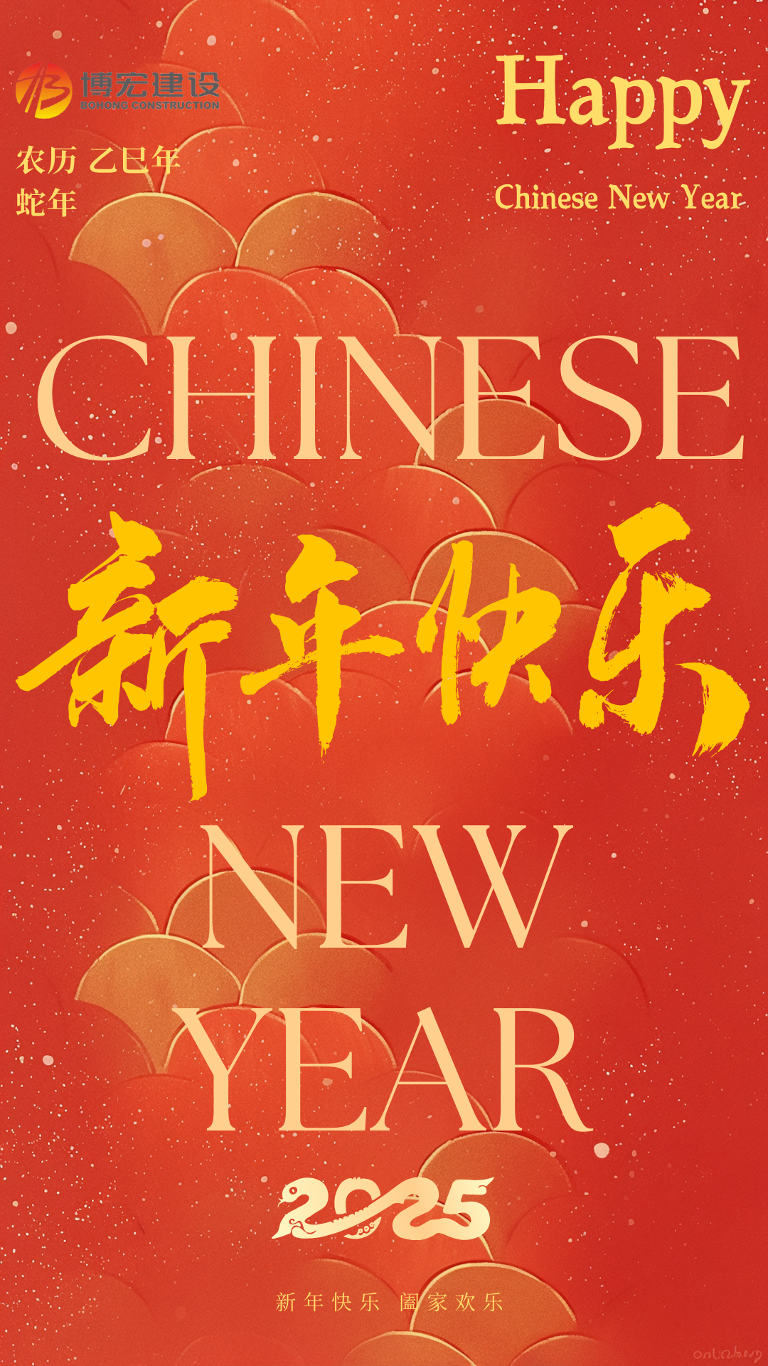 蛇年新春,向一直以來支持我們的各級領(lǐng)導(dǎo)、各界朋友及職工家屬,表達最衷心的感謝和最崇高的敬意!博宏建設(shè)祝大家萬事勝意、新年大吉!